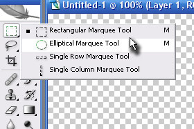 Držite z miško na Rectangular Marquee Tool (bližnjica je tipka M) in pokazala se vam bodo nova orodja. Drugin način izbire orodja je tak, da držite tipko ALT in klikate na orodje Rectangular Marquee Tool. |
