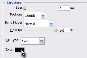 Size nastavite 1 in spodaj kliknite na kvadratek za določanje barve in nastavite črno. V oknu za določanje barve vpišite v polje # vrednost 000000 in potrdite na gumb OK. Kliknite na gumb OK. |