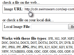 ![]() V polje Image URL vpišemo spletni naslov slike, za katero nas zanimajo dodatni podatki. |