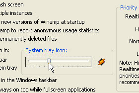 Winamp se sedaj nahaja samo v sistemski vrstici (glej sliko).
