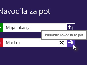 V levem zgornjem delu zemljevida lahko pritisnite na Navodila za pot okno ...