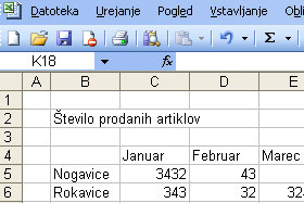 Odprli ste prvotni dokument, kjer tekst ni oblikovan in celice so brez obrob.