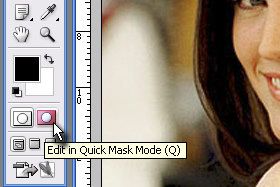 Kliknite na Edit in Quick Mask Mode (bližnjica je tipka Q). |