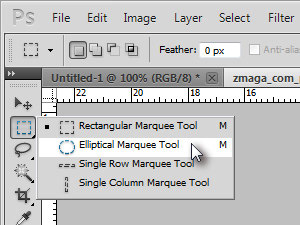 Izberite orodje Elliptical Marquee Tool.