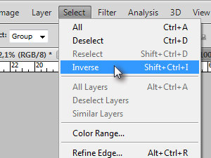 Kliknite zgoraj na Select in izberite Inverse.