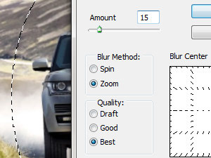 Nato kliknite zgoraj na Filter, Blur in izberite Radial Blur...