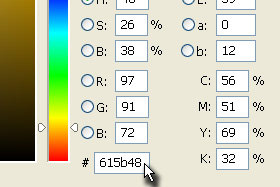 V polje # vpišite vrednost 615b48 in kliknite na gumb OK. S to vrednostjo sem določil rjavo barvo, vsekakor pa si izberite sebi bolj všečno barvo. |