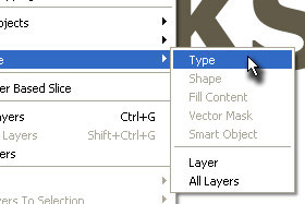Kliknite zgoraj na Layer, Rasterize in izberite Type.