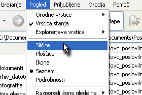 Da boste fotografije lažje izbrali, bomo spremenili pogled na datoteke v Raziskovalcu.