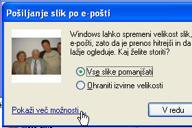 Prikaže se okno za pošiljanje slik po e-pošti.