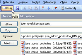 Lahko se vam bo odprl tudi drugi program za delo z e-pošto. V mojem primeru je bil privzeti program Outlook. V sporočilu pa so tudi pripete že vse določene fotografije. Določite še e-poštni naslov in kliknite na gumb Pošlji. |