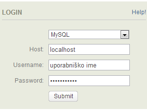 Prijavni podatki so enaki tistim, ki jih uporabljate za povezavo z MySQL bazo.