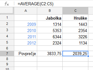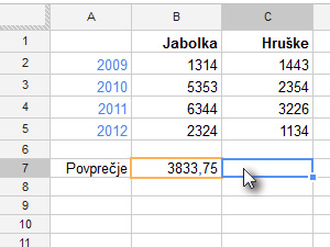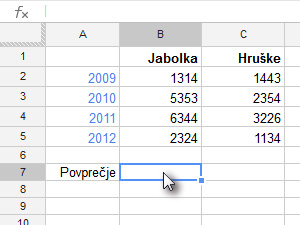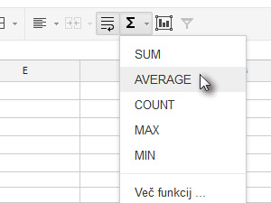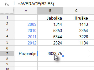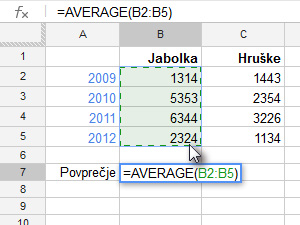 ![]() Potem vam Google razpredelnico vstavi funkcijo in omogoči, da označite polja, kjer bi radi iz njih izračunali povprečje.