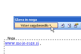 V orodni vrstici Glava in noga kliknite na izbirnik Vstavi Samobesedilo (glej sliko)...