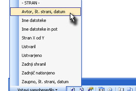 ...in izberite Avtor, št. strani, datum.