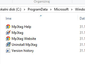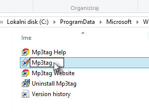 V začetnem zaslonu je v mojem primeru program, kjer bi rad pobrisal različico v imenu.