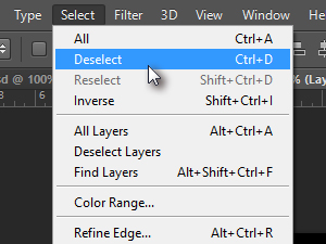 Pobrišite selekcijo tako, da kliknete na Select in izberite Deselect.
