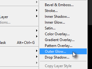 Nato pa kliknite na Layer, Layer Style in izberite Outer Glow....