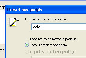 Vpišite poljubno ime za novi podpis in kliknite na gumb Naprej.