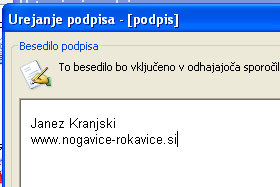 Vizitka se je dodala v podpis.