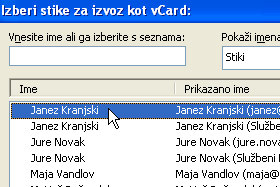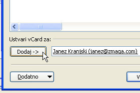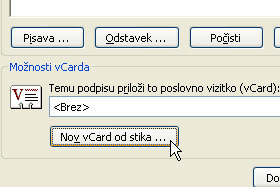 Kliknite na gumb Nov vCard od stika ... |