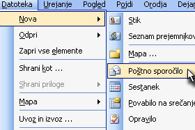 Kliknite na Datoteka, Nova in izberite Poštno sporočilo. |