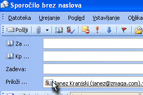 V novem sporočilu boste opazili priloženo vcard datoteko, kjer se nahajajo vsi podatki, ki ste jih prej vpisali.