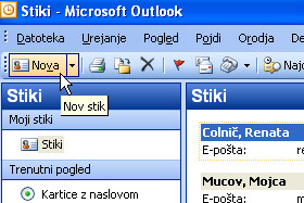 Kliknite na Stiki (glej sliko).