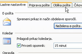 Prikažejo se dodatne nastavitve za obliko pošte.