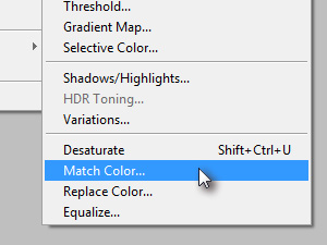![]() Torej, nato sem odprla orodje Match Color, ki se nahaja v Images ter Adjustments. |