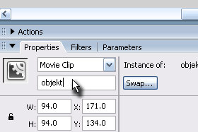 Spodaj v oknu Properies v polje (Instance Name) vpišite objekt.