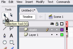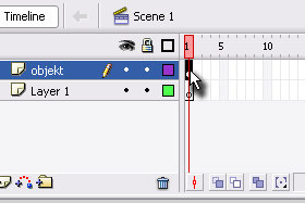 V polju Timeline označite z miško na kvadratek (frame) pod številko 1 (glej sliko).