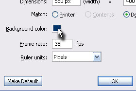 Background color določite poljubno barvo. Frame rate določite 35 fps. Kliknite na gumb OK. |
