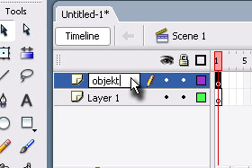 Kliknite dvakrat na novi layer in ga preimenujte v objekt. |