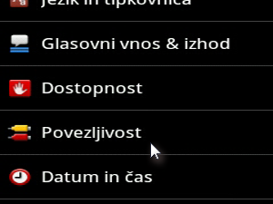![]() Sedaj pa pojdite na osnovni meni in izberite Nastavitve -> Povezljivost. |