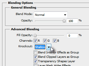 ![]() V novem oknu Knockout nastavite na Shallow ter Fill Opacity na 0% (glej sliko). |