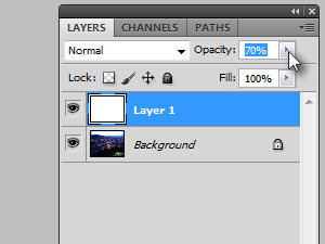 ![]() Nato layerju nastavite opacity na 70% (glej sliko). |