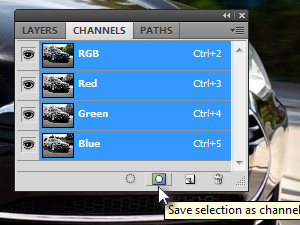 Potem pa kliknite na zavihek Channels in nato kliknite na Save selection as channel.
