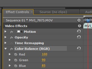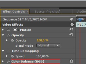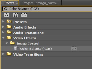 Označite video posnetek in v polju Effect controls,bi se vam moral prikazati Color Balance (RGB) ...
