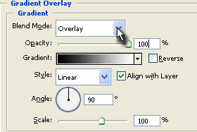 Prikažejo se nastavitve za preliv barv. Blend Mode nastavitve Overlay. Ostalo ni potrebno nastavljati (glej sliko). |