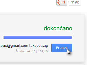 Google bo potreboval nekaj časa, da ustvari arhiv, potem pa vam bo omogočil možnost prenosa.
