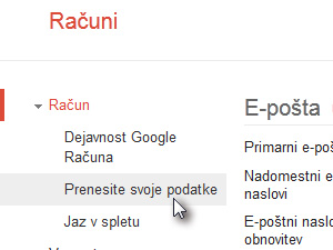 Nato na strani računa kliknite na Prenesite svoje podatke.