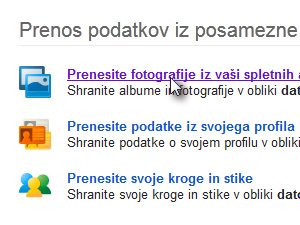 Ker imam posnetke shranjene samo v spletnih albumih, si želim prenesti kopijo na računalnik.