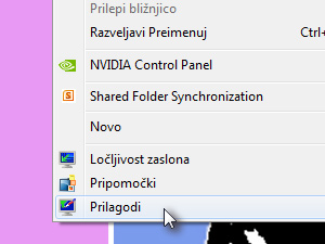 Kliknite na namizje z desnim miškinim klikom in izberi Prilagodi.