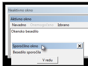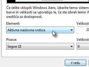 Na mojem računalniku imam navadno pisavo za aktivna okna.