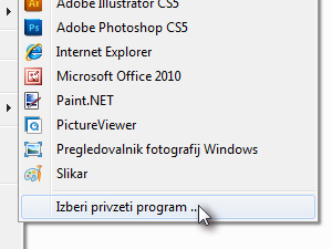 Sedaj bomo nastavili drug program za odpiranje slik.