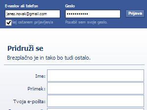 V svoj brskalnik vtipkamo naslov www.facebook.com in se prijavimo.