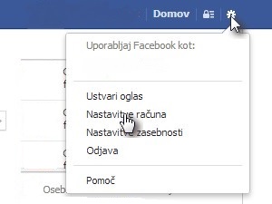 Ko smo prijavljeni, gremo v zgornji desni kot, kliknemo "kolešček" in nato Nastavitve računa.