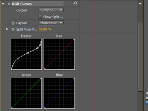Nato še enkrat poiščite RGB Curves, ga povlecite v Timeline, ter nastavite parametre tako kot jaz!