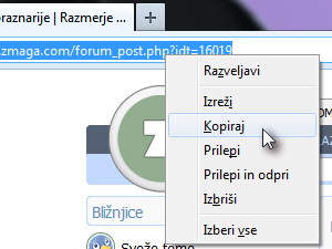 Nato še kopirajte naslov povezave tako, da kliknete na njo z desnim miškinim gumbom in izberete Kopiraj.